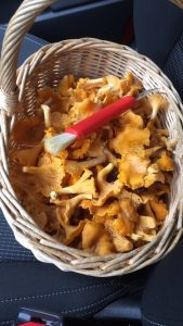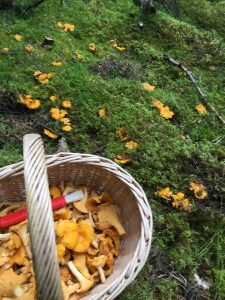 begav jag mej ut i skogen för att kolla om det fanns kantareller. Första stället var helt förstört av skogsmaskiner. Nästa ställe hade de rensat skogen på, så jag trodde det var kört där också. Men det var det inte, fick ihop en korg på ett litet ställe bara. 🙂 Ikväll blir det smörstekta kantareller.