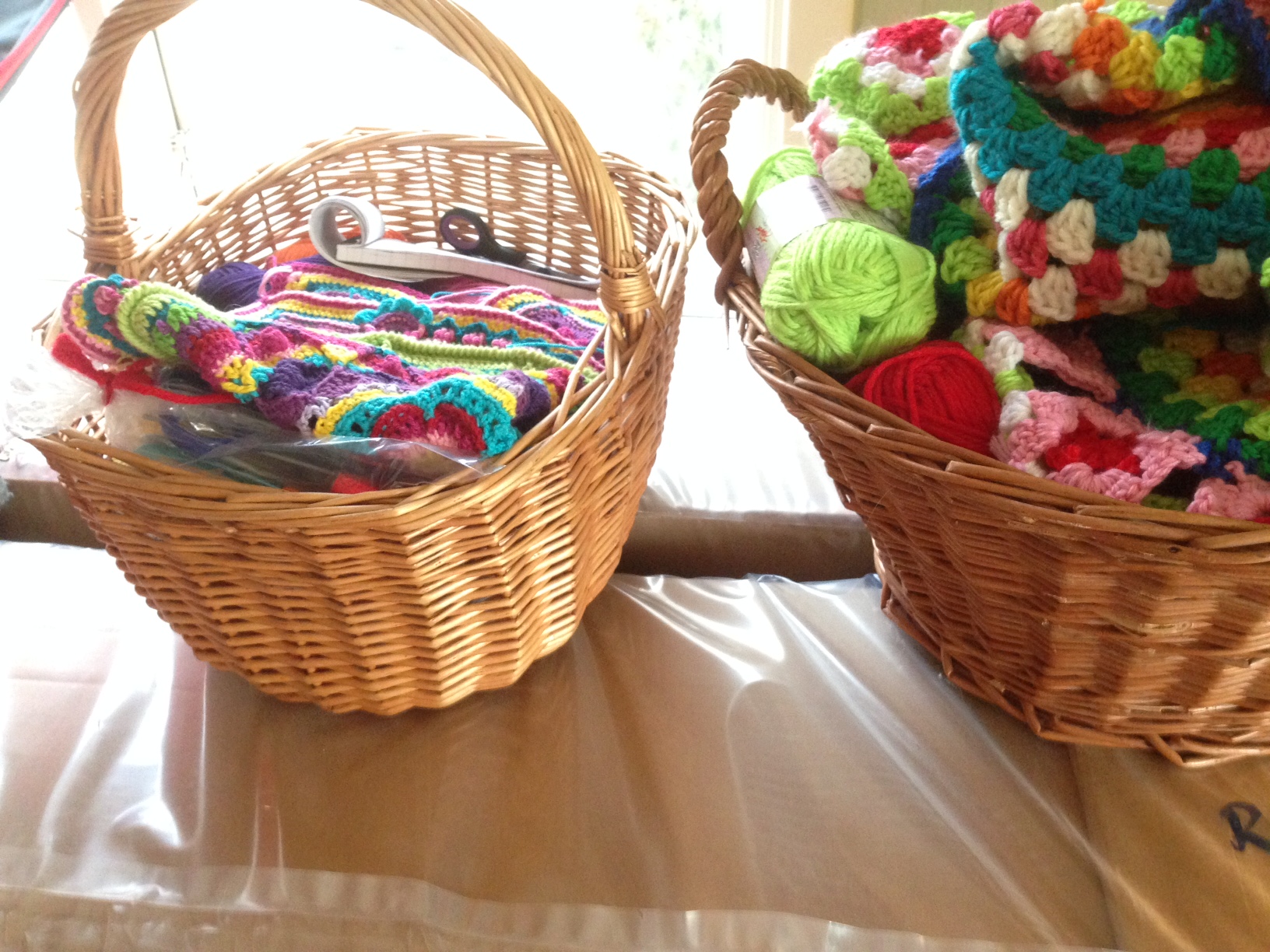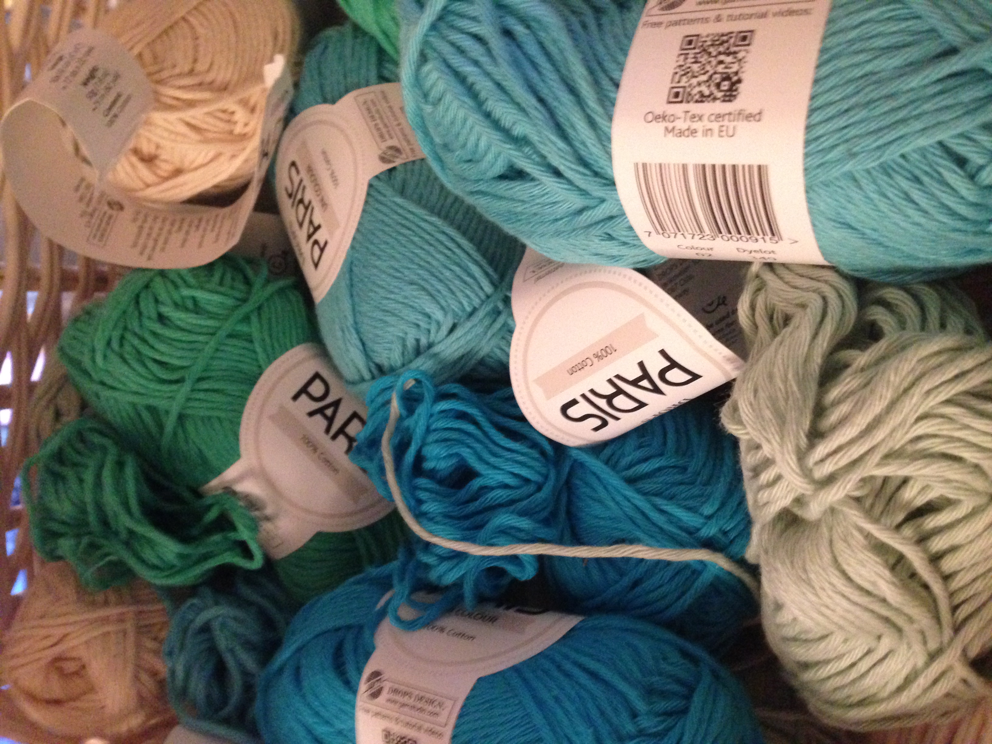 Jag har haft några högar med virkade rutor liggandes rätt länge, dom har inte riktigt vetat vad som ville bli. Först tänkte dom bli en kofta, men nu blev dom ännu en filt, och äntligen är den klar och äntligen är alla trådar fästade. Det var verkligen hur många trådar som helst att fästa. Men nu är det gjort och mysig blev den. 🙂 Virkad i Drops Paris, 100% bomull.