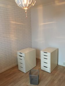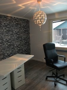 men det har ju inte gjort så mycket. Men nu börjar lite energi komma tillbaka, men betoning på lite. Igår gjorde jag iaf i ordning mitt arbetsrum, satte upp gardin och installerade blommor, fick ner datorn i datorhurtsen, tog bort den gamla skrivaren, sorterade och slängde gamla papper m.m. Satte upp en wi-fi-extender så det ska bli bättre nät i hela källaren förhoppningsvis. Idag har jag installerat den nya skrivaren (hell!) och fått ordning på mitt ”office”. Känns som om hösten kommer att bli intensiv och det är bra att ha ordning på sina grejjer 🙂 Imorron ska jag kanske ta itu med pysseldelen av rummet. Love my house 🙂