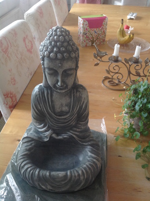 Idag var jag på loppis och köpte kaffekoppar för sex spänn styck, hade en idé om att plantera lökar i dom, så jag åkte till Granngården och köpte mini-påskliljor och pärlhyacint. Nu står dom så fint i köksfönstret, det blev riktigt fint. Har också välkomnat en solcells-buddha och ett arrangemang med penséer och påskliljor till trappan. Vårmys! 🙂