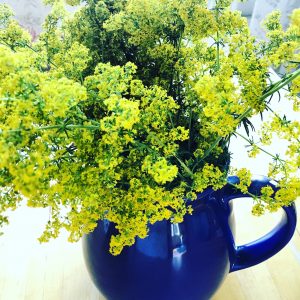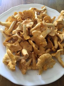 Första semesterdagen. Sov länge. Frukost i sängen. Tog sen cykeln och cyklade ut i skogen för att kolla efter kantareller. Torrt som fnöske i skogen. Vildsvinen hade varit och bökat på mina ställen, dom gillar tydligen kantareller. Men känslan. Jag har ju inte varit ute på faktiskt flera år. Innan operationen hade jag så ont dom sista ären, att jag inte kunde gå speciellt långa sträckor i skogen. Efter operationen fick jag en skilsmässa slängd i ansiktet och förra året gick ju åt till att hålla näsan över vattenytan. Så det är underbart att kunna gå ut hur man vill igen. Och cykla. Det är barndom att cykla på slingriga små grusvägar i skogen i sommarvärmen. Jag hittade till slut kantareller, ca 2 liter, jättefina. Och massor av smultron, hallon och blåbär finns det. Plockade också gulmåra, dom luktar ju så fantastiskt. Gulmåra är farmor, sommar och canasta, kanelbullar, pannkakor med hallonsylt och Hirams svartvinbärssylt för mej. Farmor älskade gulmåra. Hon ville alltid att man skulle gå ut och plocka gulmåra åt henne. Vi satt i hennes lilla stuga och spelade canasta, flugorna surrade, man drack saft och åt bullar. Livet på en pinne. 🙂 Well… Idag blev det kantareller som ska få bli min middag och solvarma blåbär som åts direkt i skogen. Hittade ett äckligt älgben och en massa hårtussar också.