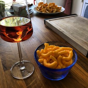 Har nu ätit lunch vid halv fem som bestod av rosévin och ostbågar. Är det semester så är det 🙂