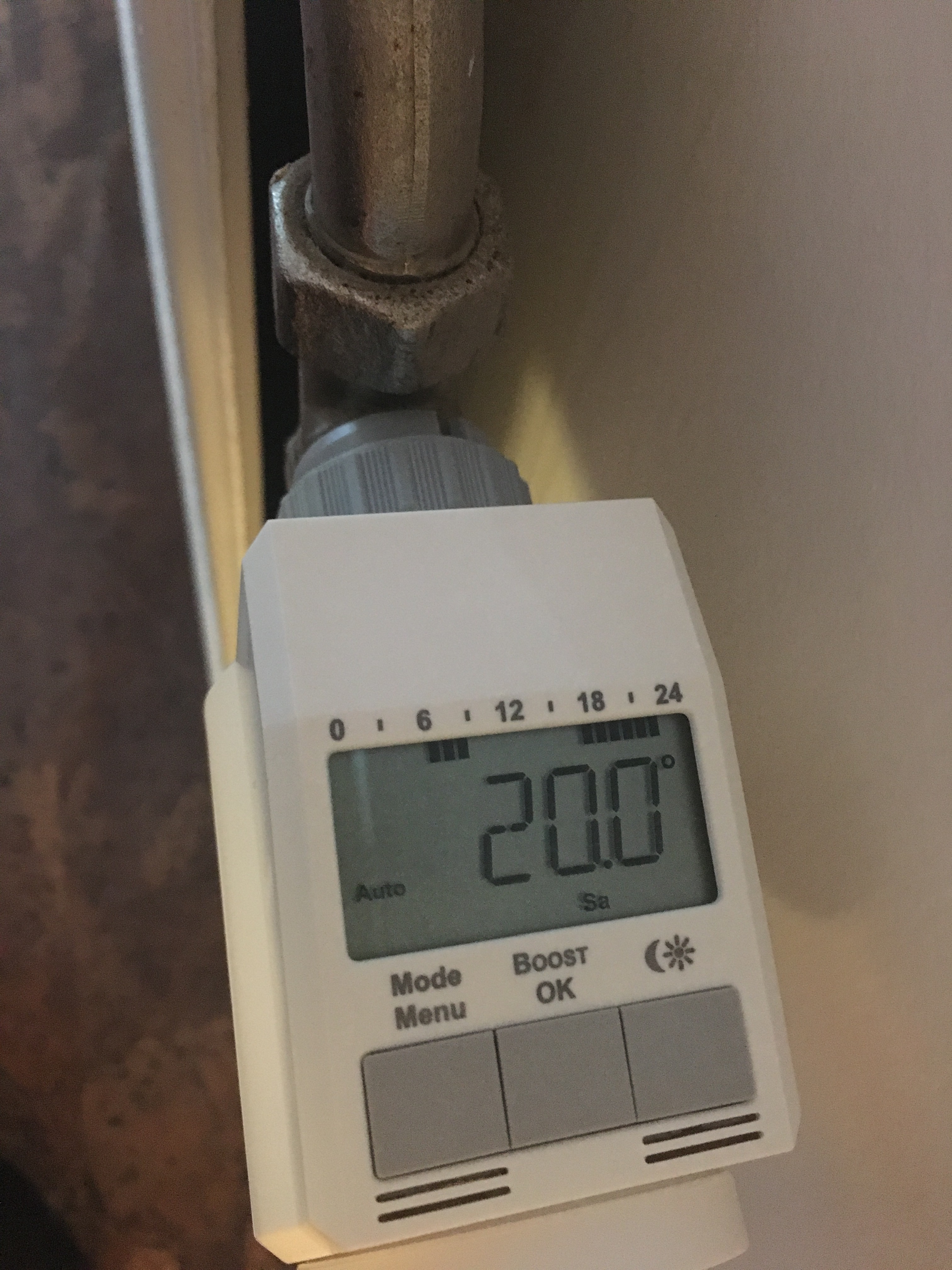Idag blev jag väckt med frukost på sängen av ett av barnen. ”Nu kan du lata dej hela dagen, mamma”, sa han. Vilka barn jag har! Jag har försökt lata mej 🙂 Men nu kom jag på att jag skulle installera termostaten som jag ska testa på ett av elementen.