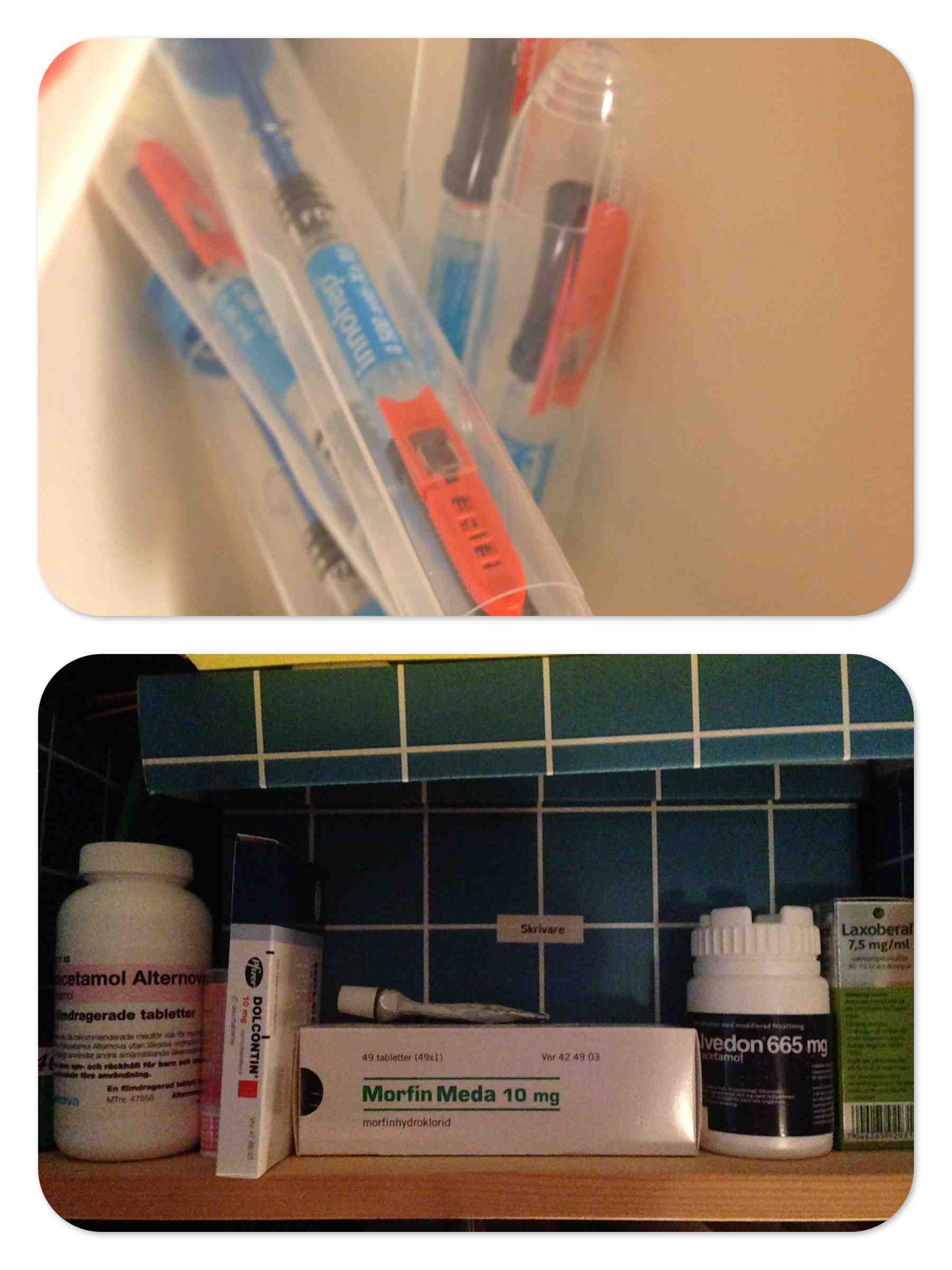 Jag har också bestämt mej för att sluta med den sista morfintabletten idag, för att sen börja trappa ned på Alvedonet om ett par dagar, jag tror att det kommer att gå bra nu. Nu är det inte heller många innohepsprutor kvar, så snart kanske man kan vara klar med alla mediciner! 🙂