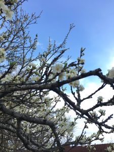 sol och en hel dag i trädgården. Underbart! Plommonträdet slog ut idag, det är så fint. Har klippt gräset. Fick åka ner och fylla på fem liters-dunken med bensin, första gången på två år. Köpte ju nån billig gräsklippare när jag flyttade hit efter att jag bråkat med robotgräsklipparen ett par månader. Den drar ju tydligen nästan ingen soppa och startar direkt efter att jag tar fram den efter vintern, utan att man behöver göra nånting alls med den, amazing!