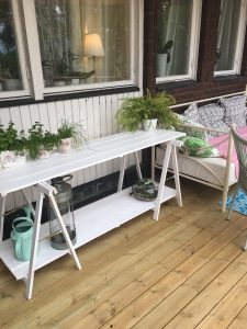 Imorron ska också terassvärmaren fram, ska skruva ned en ful lampa på verandan och hänga upp den fina orientaliska jag fick när jag fyllde år. Ska åka och köpa lite plantor och ska måla om jag orkar. Så kul att kunna fixa ute! 🙂 Nu börjar livet, bort med vintern!