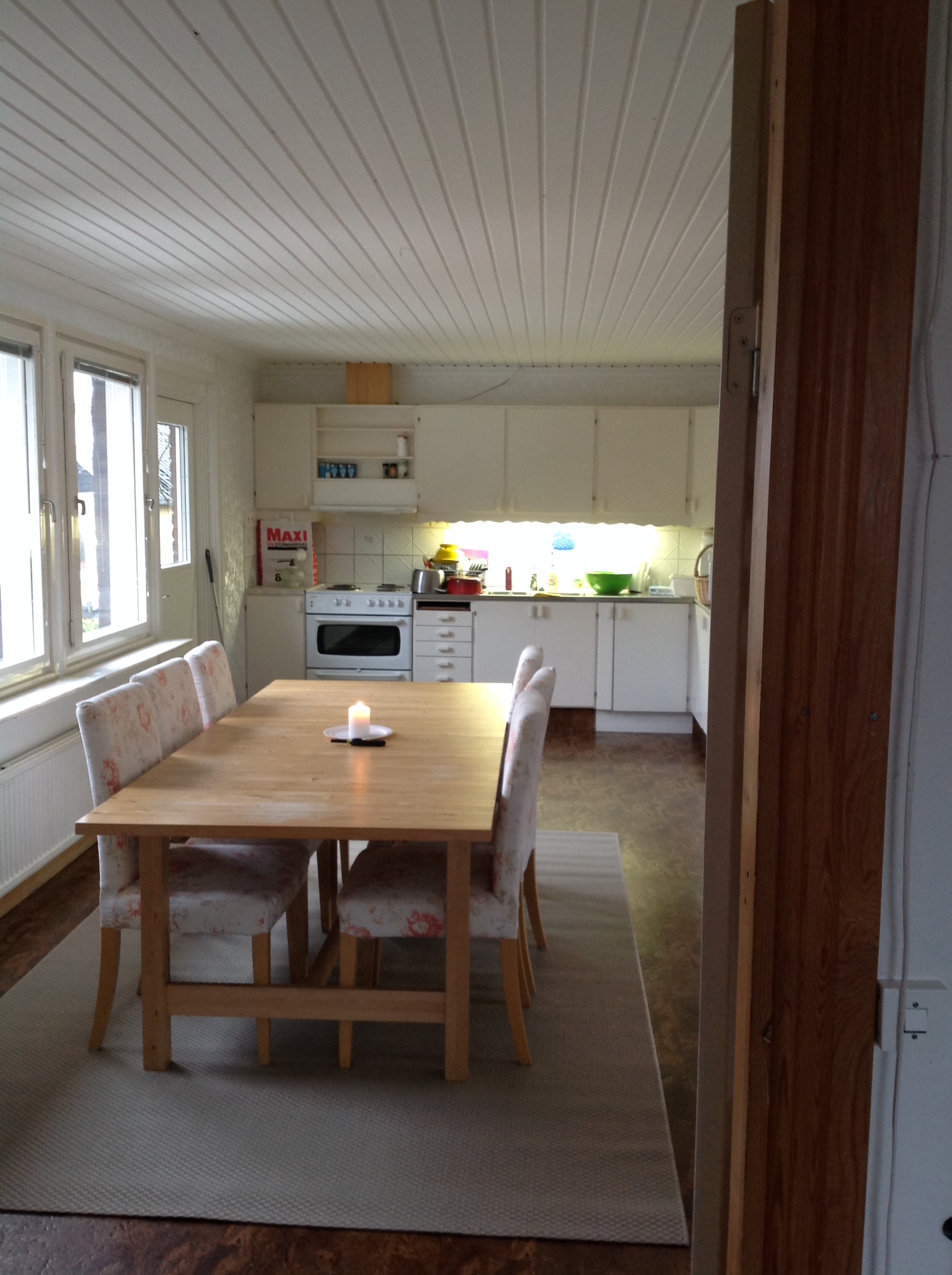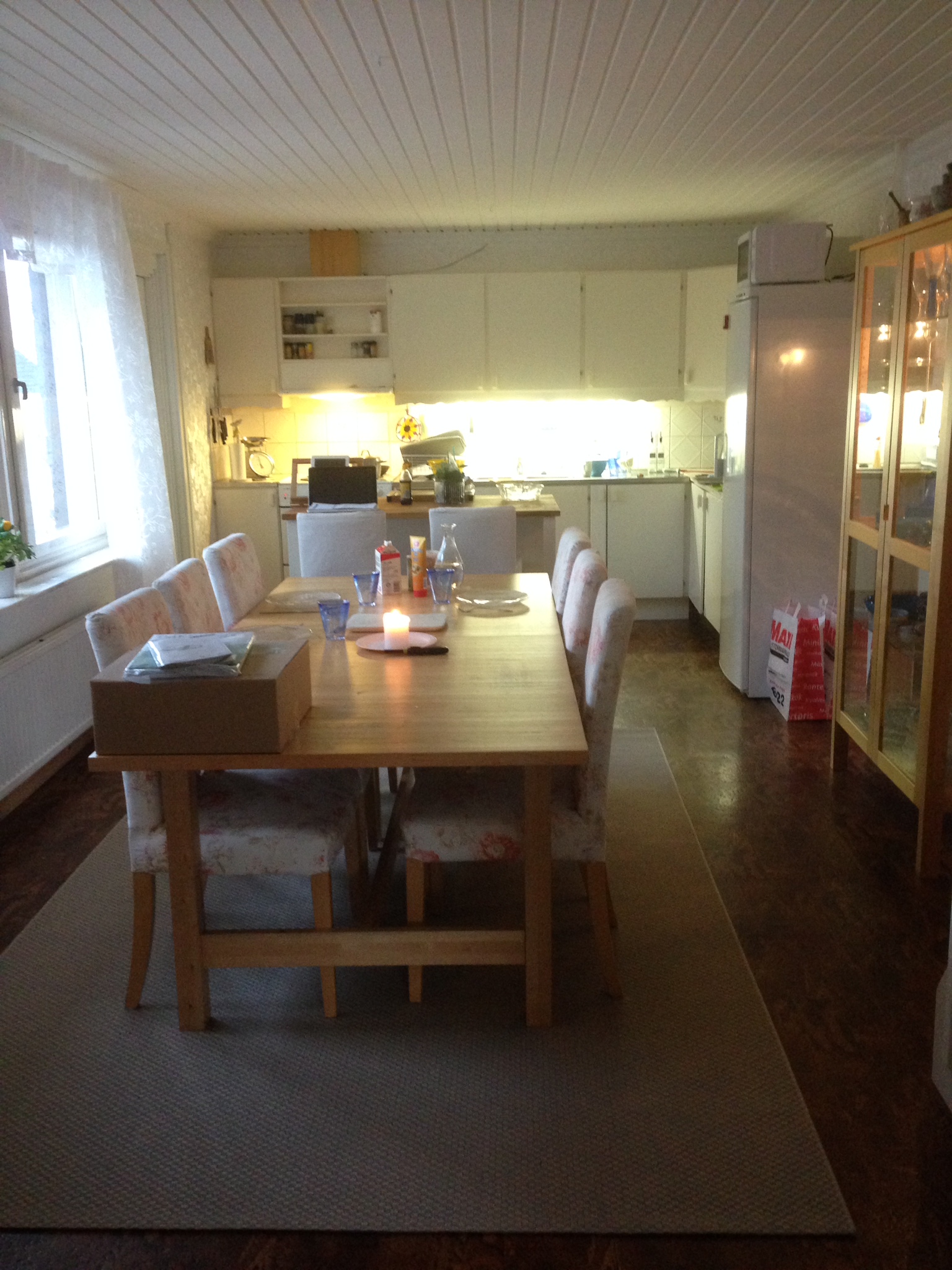 Lördag klockan åtta kom två målare för att måla om taket i kök och hall (som var mörkt furufärgat, tänk gammal bastu) och tapetsera i köket (det var originaltapeter från 1972). De var här i tre dagar, samtidigt har vi försökt packa upp, vi har varit på IKEA och på Biltema m.m för att köpa sånt vi behövde. Igår fick jag leverans från IKEA som var beställd sen tidigare och också en ny torktumlare (för vem kan leva utan det). Fick hjälp med att bära och installera. Idag är första dagen vi inte har något inbokat och då vaknar jag klockan sex!